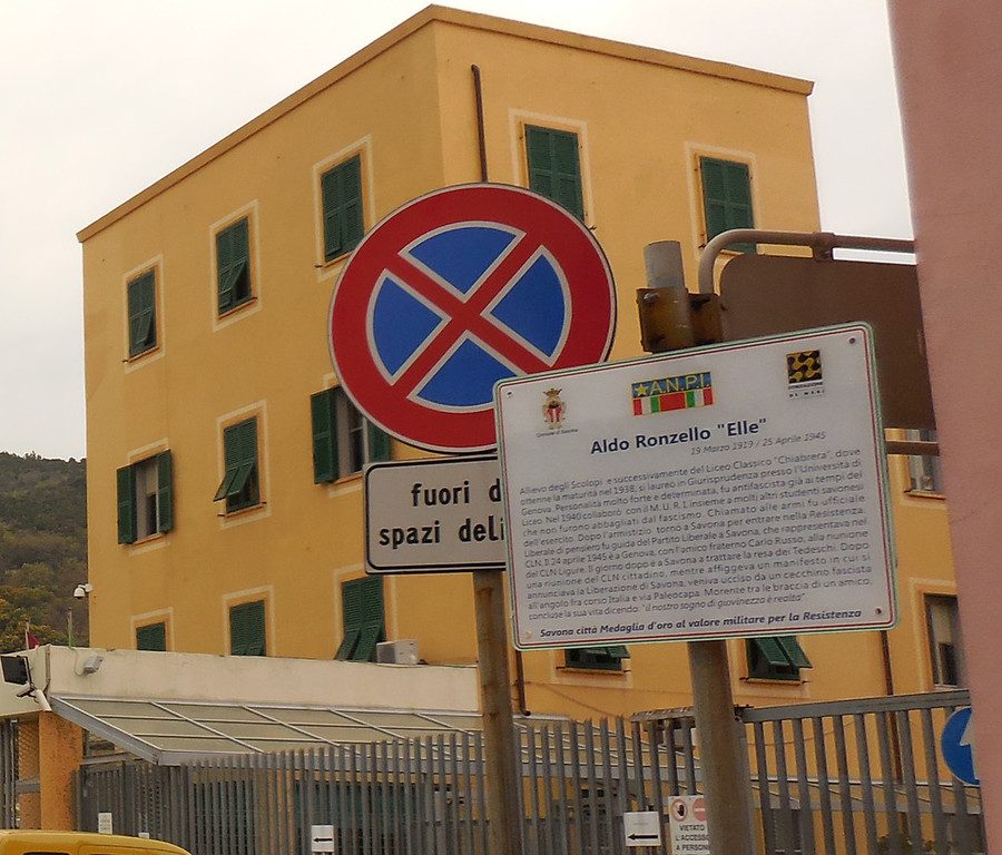 La Città di Savona, Medaglia d'Oro al Valore Militare per la Resistenza, mantiene viva anche nella propria toponomastica la memoria storica dell'opposizione antifascista, grazie ad un progetto realizzato da ANPI con il contributo della Fondazione De Mari e con la collaborazione dell'Assessorato alla Cultura del Comune di Savona. Nelle numerose vie e piazze della città intitolate a Martiri della Resistenza sono state apposte speciali targhe, ognuna delle quali illustra una breve biografia del caduto nella Lotta di Liberazione o dell'antifascista vittima della violenza del regime fascista da cui la strada prende il nome.