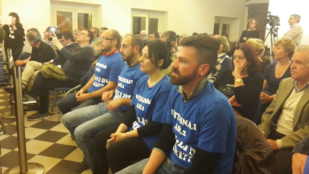 Ieri sera gli operatori del Santa Corona hanno voluto fare così sentire la loro voce in modo “silenzioso”. Un gruppo ha presenziato infatti alla seduta del consiglio con indosso la maglietta che riportava la seguente scritta “Interinali Asl2 figli di chi? Lavoratore usa e getta”.