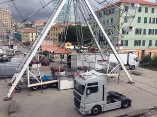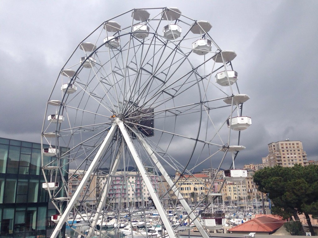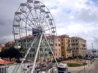 Ammirare Savona dall'alto? Ora si può: è arrivata in darsena la ruota panoramica che permetterà di avere un'ampia visuale a 360 gradi sulla città e su tutto il litorale. Si potranno ammirare da una postazione mozzafiato non solo il porto, la torretta, il Crescent, il complesso della Campanassa, il Priamar ma anche la costa e l'isola di Bergeggi.