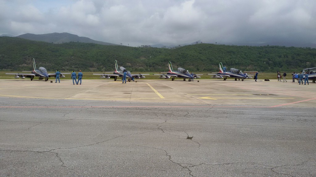 Sono ufficialmente atterrate questa mattinata all'aeroporto Panero di Villanova d'Albenga le Frecce Tricolori, protagonisti dell'Air Show che si svolgerà domenica a Loano.