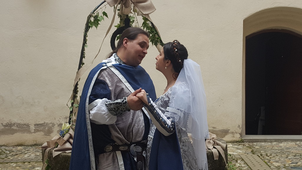 Infatti, la funzione svolta dal Parroco Massimo Iglina con il consenso diocesano ha visto il cerimoniere utilizzare il rito matrimoniale medioevale come richiesto dagli sposini.