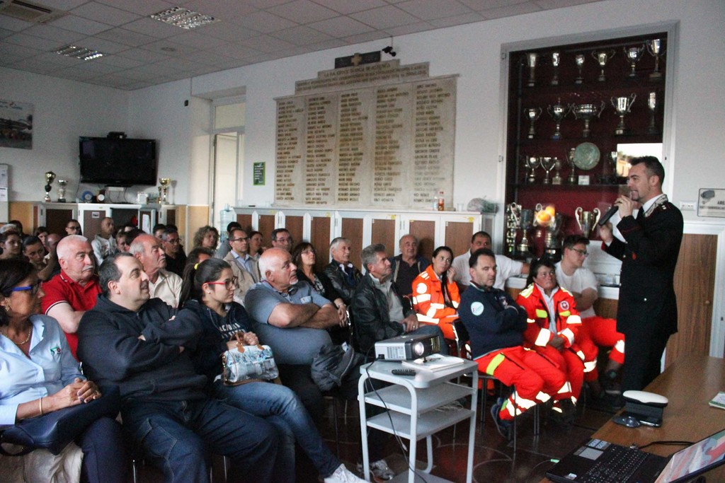 Dopo i saluti iniziali e gli onori di casa del Presidente Ardoino i militari dell’Arma hanno tenuto una lezione durata più di tre ore, illustrando tematiche di profondo coinvolgimento per ogni volontario della Pubblica Assistenza. Dopo un interessante ragguaglio tecnico dell’Ufficiale Pilota dell’Arma, il quale ha indottrinato i volontari su quelle che sono le tecniche di elisbarco e le informazioni attinenti al corretta cornice di sicurezza che occorre conoscere quando si opera in presenza o per mezzo di un elicottero, l’Ufficiale dell’Arma Territoriale è entrato nel vivo dell’incontro. Sviluppando gli aspetti pratici e mostrando, mediante una suggestiva simulazione di sopralluogo giudiziario, i complessi protocolli tecnico-operativi da seguire in fase di accesso al luogo del delitto, anche grazie al valido supporto di un proprio collaboratore tecnico, ha evidenziato le azioni da evitare per non alterare ed inquinare la scena criminis, tutte naturalmente subordinate all’obiettivo primario di salvare la vita umana e prestare soccorso.