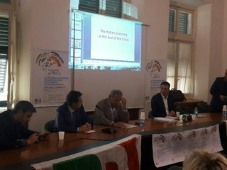 Relatori dell'incontro il segretario provinciale del PD Fulvio Briano, il consigliere regionale Luigi De Vincenzi, il deputato del PD Franco Vazio e Filippo Taddei, responsabile Nazionale Dipartimento Economia e Lavoro del PD.