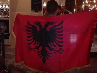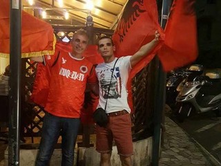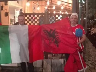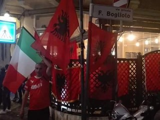Ed ecco la gioia dei tifosi nella comunità albanese di Alassio che si è riunita con slogan e bandiere a seguire insieme la partita.