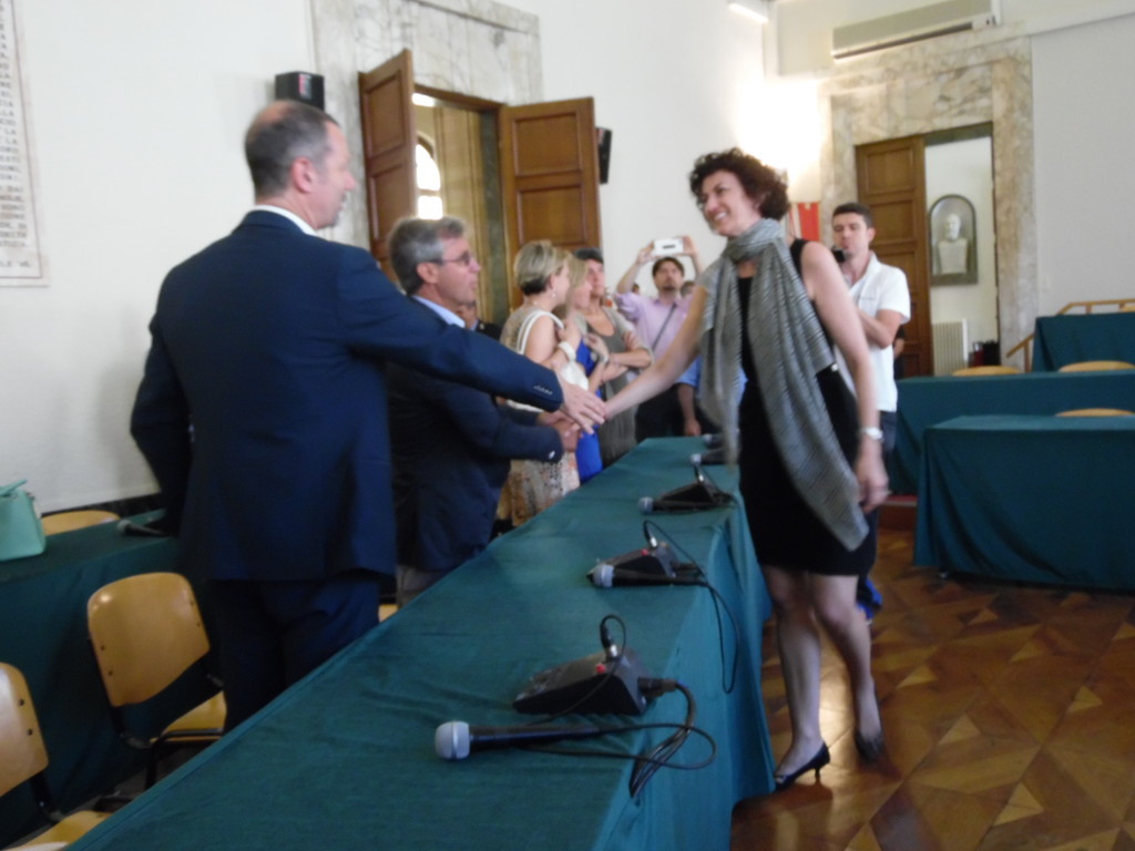 “Stiamo lavorando in questi giorni sulla giunta e a breve confermeremo tutti i nomi e ne faremo uscire degli altri. Oggi mi sono emozionata per un fatto privato - continua il primo cittadino - Mio padre era dirigente in Comune a Varazze ed è scomparso dieci anni fa. Mi è mancato molto il suo sostegno e il suo consiglio in questa campagna elettorale e averlo oggi accanto a me. Avrebbe promosso la mia iniziativa: mi ha sempre detto che ero matta, ma che con la mia pazzia avrei fatto strada. Ci vuole un grande impegno come sindaco. Ho già preso diverse cartelline e mi sono portata i "compiti" a casa per studiare le prime pratiche da affrontare. Il bilancio sarà il primo passaggio da affrontare: è sicuramente la base per partire e mettersi a lavorare. Da oggi si apre una nuova era, il cambiamento che si auspicava in campagna elettorale. Nella mia autonomia potremo lavorare in sinergia con la Regione, che è fondamentale per rilanciare questo capoluogo di Provincia".