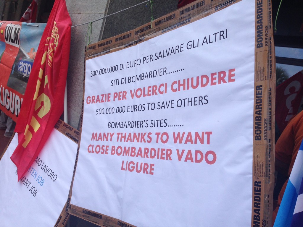 "Non possiamo permetterci di nessun taglio, ancora oggi è presente un assetto in aiuto dalla Regione Liguria, pari a oltre 6 milioni di euro, che attraverso il mantenimento dello stato occupazionale e un piano industriale, Bombardier potrebbe prendere per fare sviluppo”.