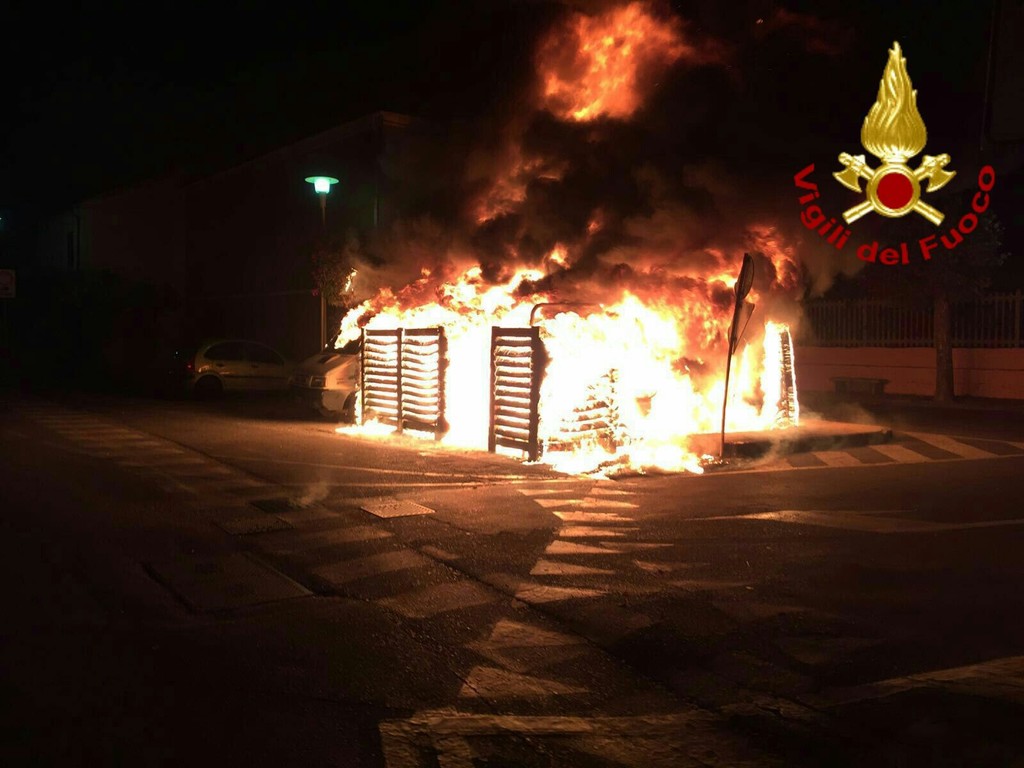 L'incendio divampato intornmo alle 2,45 è stato domato dai Vigili del Fuoco
