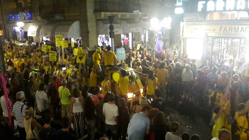 A darsi così Battaglia i Rossi “Pirati”, gli Arancioni “Anni ‘50”, i Gialli “Peace and Yellow”, i Verdi “Il Giro del Mondo in 80 giorni”, il Blu “Oriente Blu”, i Viola “Magia”, i Bianchi “Borgo Ghiacciato”.