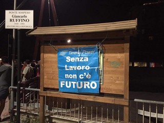 Nuova mobilitazione dei lavoratori della Tirreno Power. Questa sera sul ponte alla foce del Letimbro sono stati appesi gli striscioni “Sorgenia+Engie=vergogna” e “#NoaLicenziamentiTirrenoPower. 857 famiglie sul lastrisco”. Un’iniziativa di protesta in occasione dei tradizionali fuochi d’artificio di Savona del 30 luglio, per continuare a tenere alta l’attenzione.