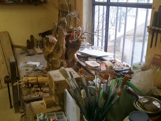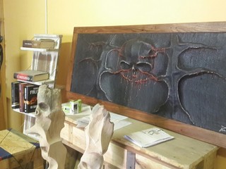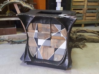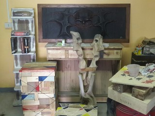 La dove altri vedono qualcosa da buttare, Enrico immagina un arredo e lo crea.Tutti pezzi unici, così come i quadri che espone alle pareti. Si tratta di tele dai toni gotici, create assemblando ferro e sacchi di juta. Sotto viene creato un disegno con il filo, che viene poi ricoperto dal tessuto tinto poi di nero. Opere d’arte in 3 D che emergono con tutta la loro intensità dalla parete. Perché tutto, anche gli oggetti, ha spesso una seconda vita.
