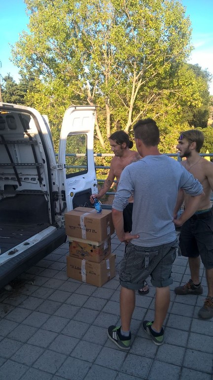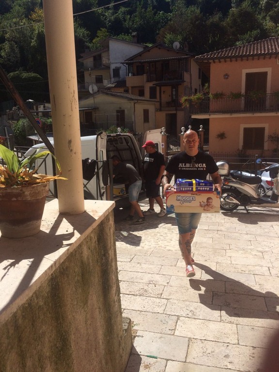 Ore 3.45 i tifosi dell'Albenga Calcio hanno caricato un furgone con beni di prima necessità e sono pronti per partire e portare il loro supporto alle popolazioni terremotate del Centro Italia.