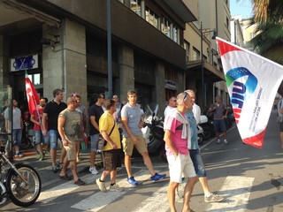 Il corteo dei lavoratori Piaggio, iniziato dall'Unione Industriali e passato per via Gramsci, è arrivato in Prefettura.