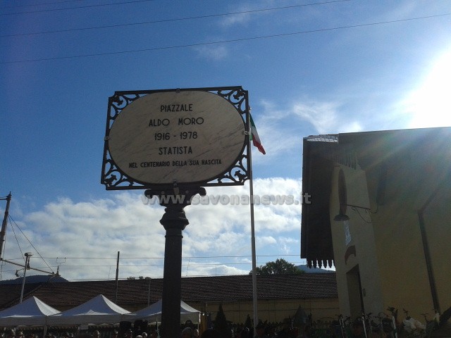 La targa benedetta dal parroco della parrocchia di San Lorenzo, è stata scoperta dallo stesso primo cittadino Briano e da una donna 'cairese' nata lo stesso giorno della morte dell'onorevole Moro.