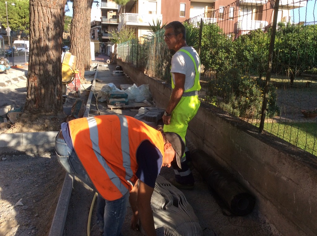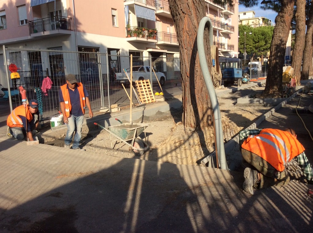Intervento che si è avvalso di una tecnica innovativa con lo scopo di eliminare le gobbe provocate dalle radici , che garantisse però la salvaguardia dei pini marittimi, attuata tramite la posa di un alveolare tridimensionale new web che funge da contenitore direzionale salva radici, la cui struttura viene riempita di materiale arido, poi successivamente viene posato un telo tessuto non tessuto , sabbia, autobloccanti e griglia . I lavori con condizioni meteo favorevoli potrebbero concludersi già a fine ottobre, primi di novembre.