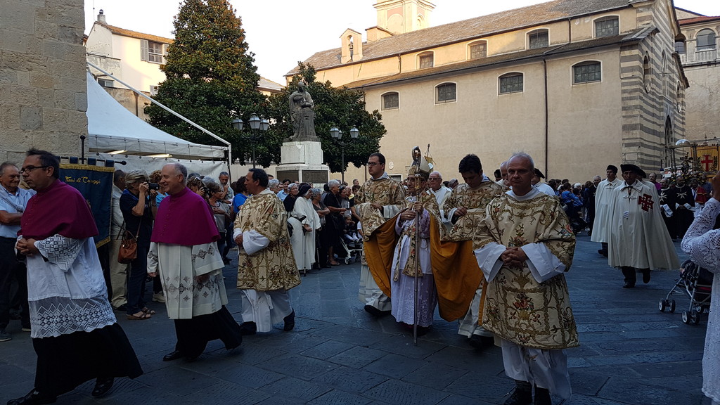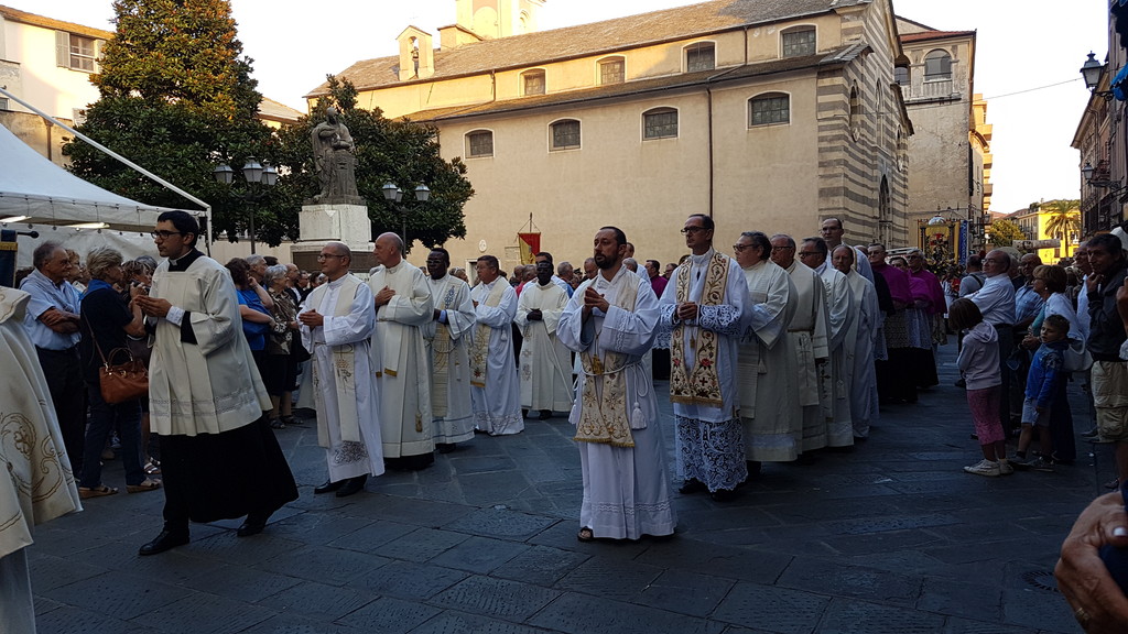 Significativi alcuni passaggi dell'omelia di Borghetti: "Non è oggi, come si dice in gergo canonico, il giorno della presa di possesso del mio ufficio di vescovo diocesano o del mio “ ingresso”; secondo il CJC can 409 § 1: “nel momento in cui la sede episcopale è vacante, il vescovo coadiutore diviene immediatamente Vescovo della Diocesi per la quale era stato costituito” , il 25 marzo del 2015, lo ricorderete sono venuto in mezzo a voi come Vescovo coadiutore, poiché il coadiutore, “gode del diritto di successione”; e tutto ciò è avvenuto il 1 settembre 2016 con l’accettazione da parte del Santo Padre delle dimissioni del Vescovo S.E. Mons Mario Oliveri che desidero ricordare con affetto e riconoscenza in questo momento. D’intesa con il Consiglio Episcopale ho scelto di indicare come giorno simbolico d’inizio del mio ministero di Vescovo diocesano la festa del Patrono della Diocesi San Michele Arcangelo nella cattedrale San Michele di Albenga e Imperia anche essa teatro del peccato, e di Satana".
