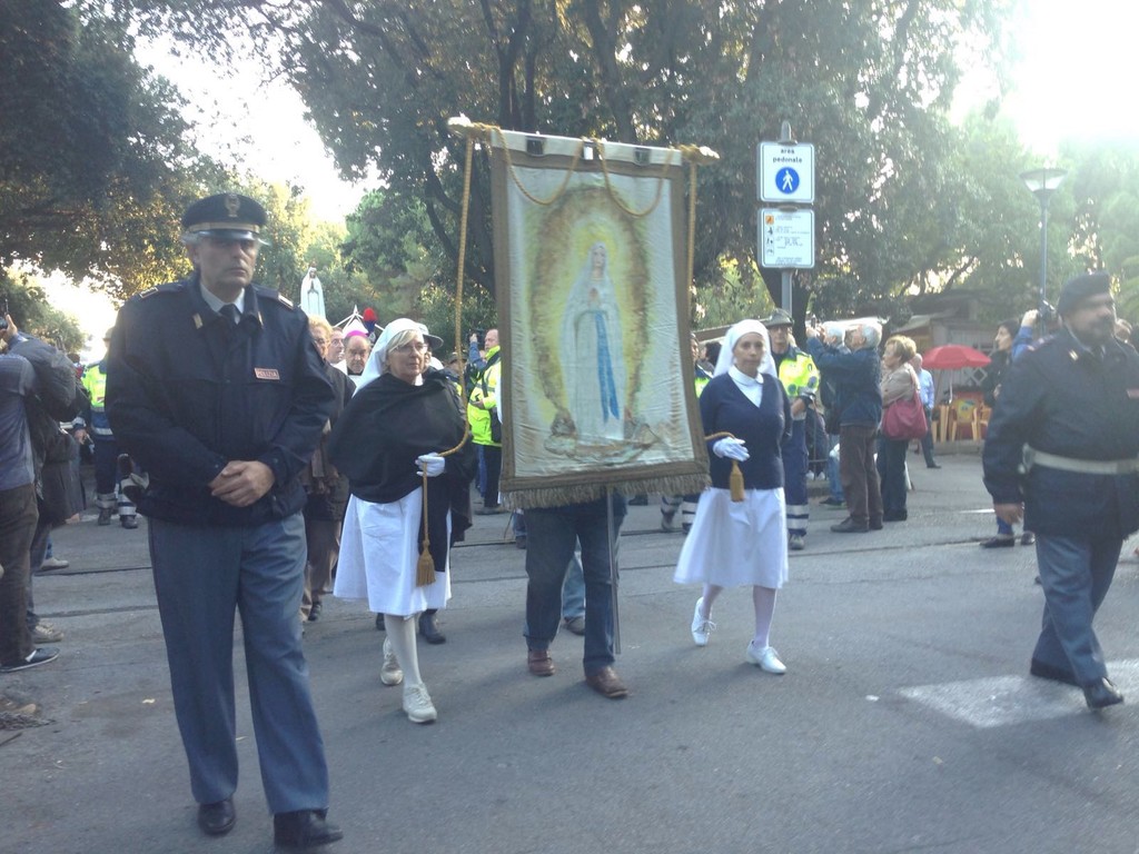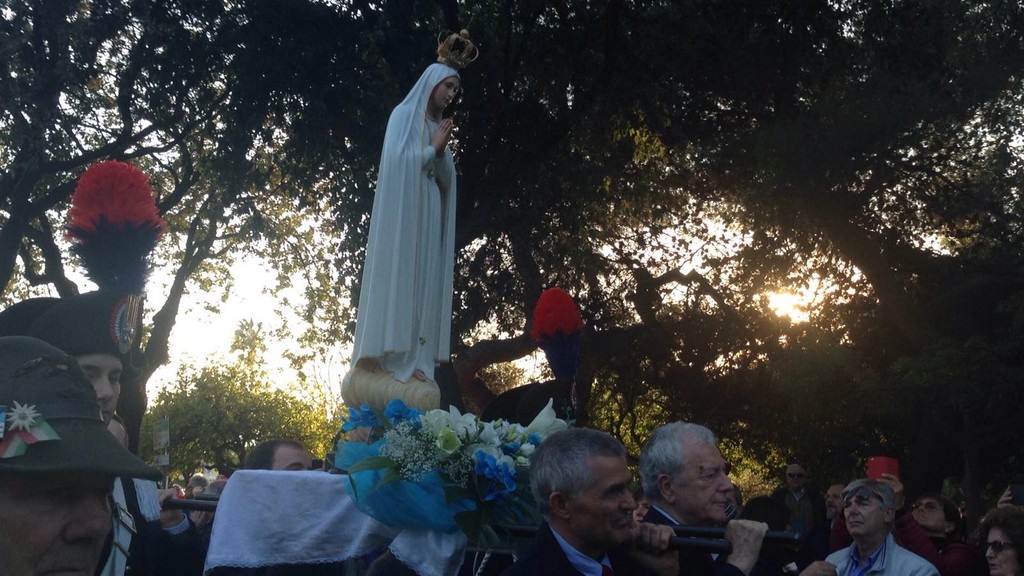 La statua della Madonna di Fatima è atterrata con elicottero della guardia di Finanza, di seguito è stata avviata la processione verso il Duomo guidata dal vescovo Lupi per la celebrazione della messa prevista alle 18.