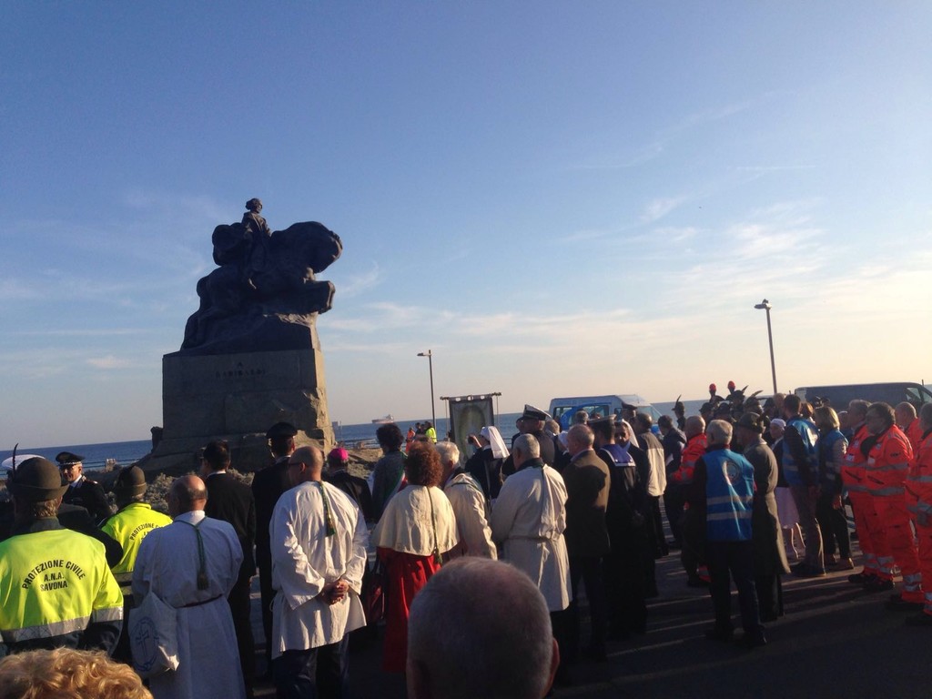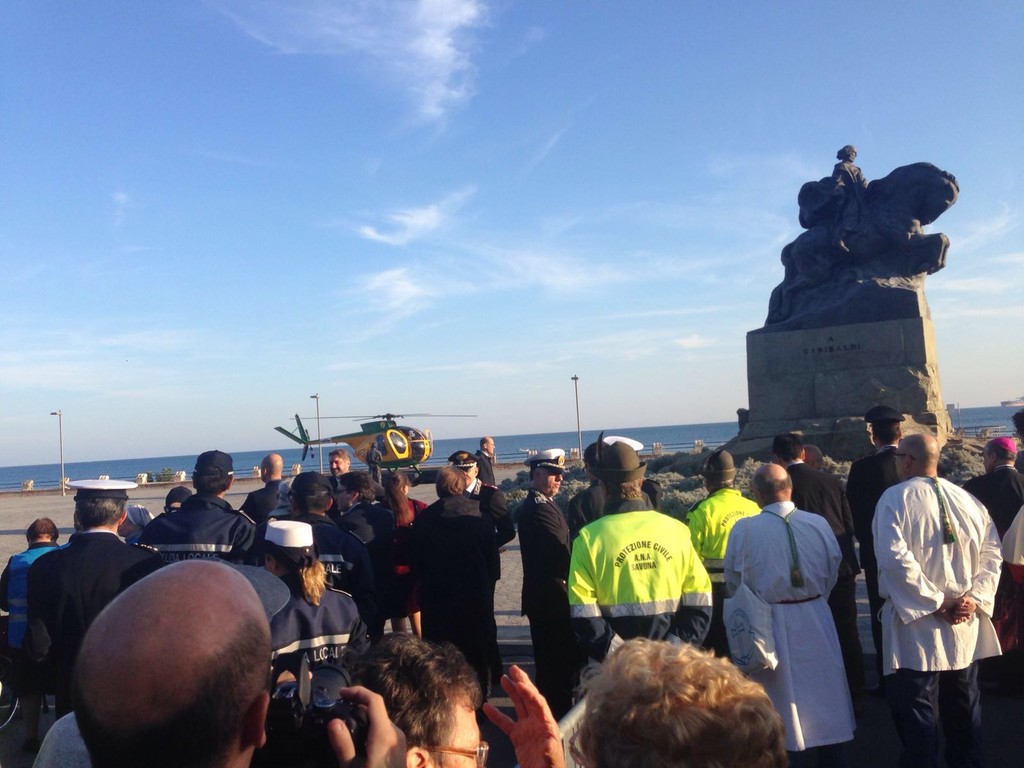 E’ atterrata dal cielo su suolo savonese la Madonna Pellegrina di Fatima. Alle 17 di questo pomeriggio infatti è arrivata in elicottero l’attesa statua in piazza Eroe dei due Mondi al Prolungamento. Molti i fedeli ad attenderla, dopo 57 anni dall’ultima visita.