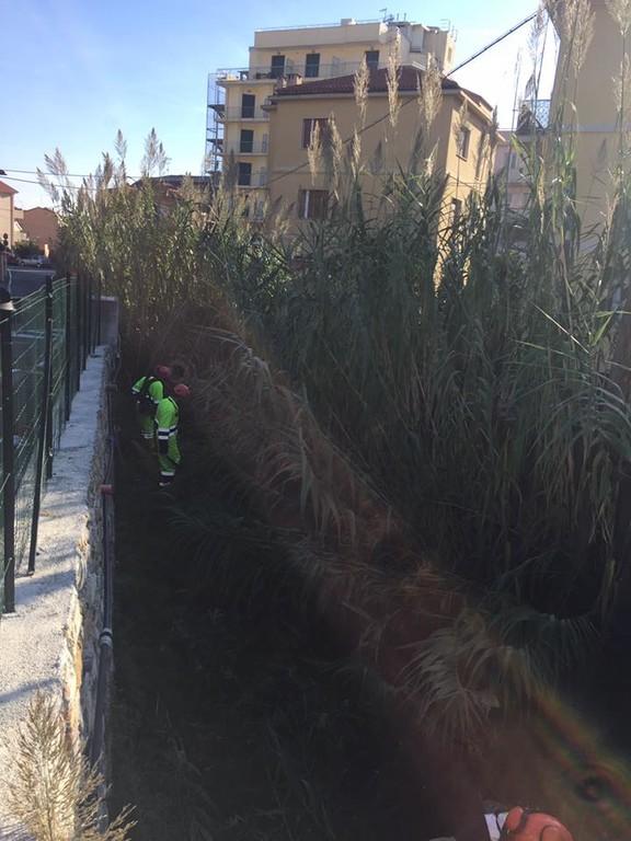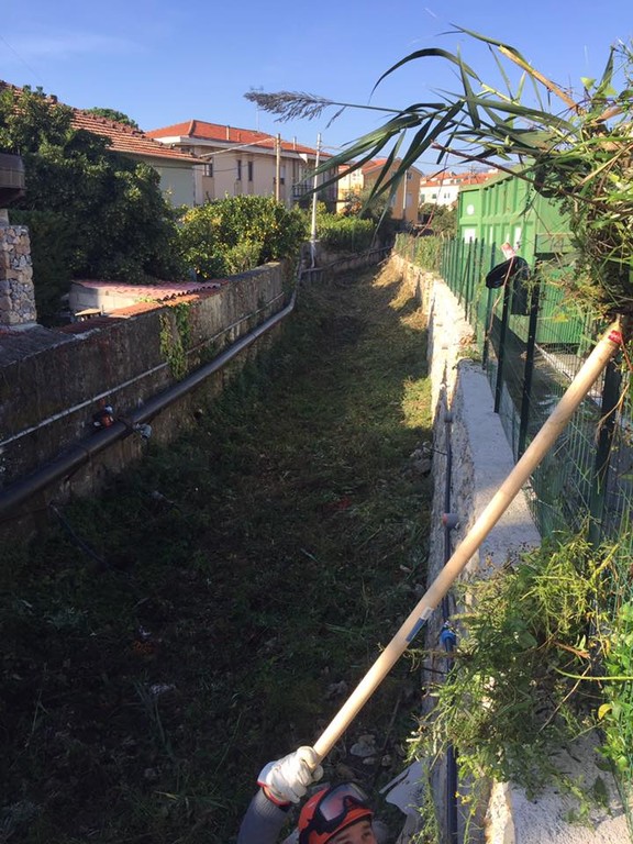 L’esercitazione prevedeva di rimuovere cannicci che infestavano il greto per un raggio di 100 metri