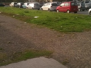 Sporcizia e degrado in piazza del Popolo ai piedi del tribunale.