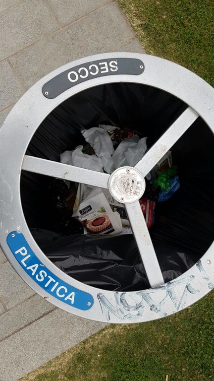 Non solo, segnalazioni anche relativi i cestini dei rifiuti predisposti sì per la raccolta differenziata, ma con un sacchetto unico dove confluiscono tutti i rifiuti (cosa per altro già segnalata a giugno 2015 – vedi articolo)