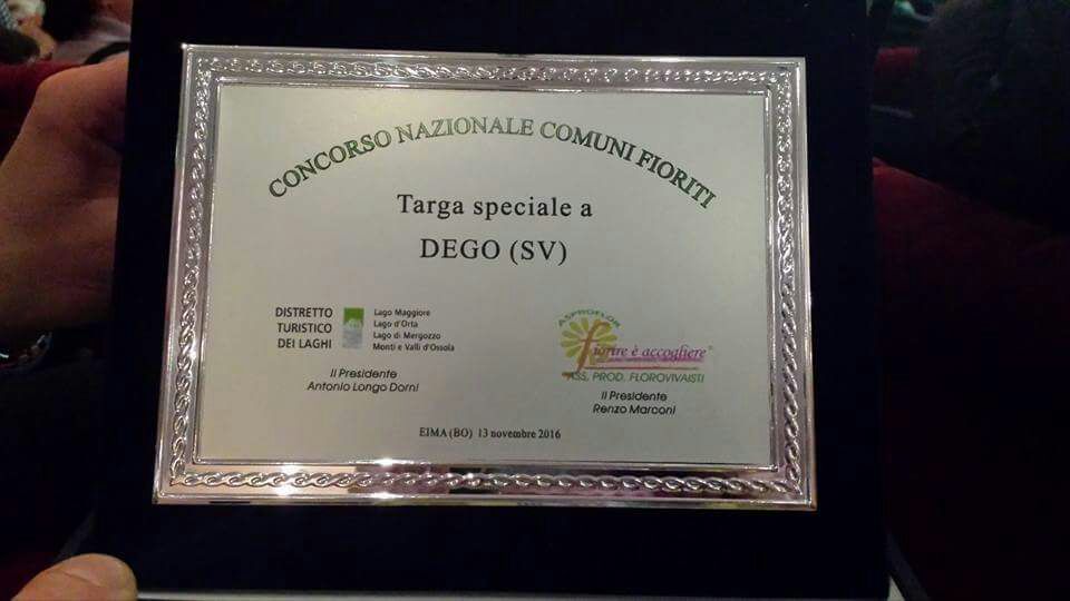 Incetta di riconoscimenti per il Comune di Dego al concorso nazionale "Comuni Fioriti 2016". La premiazione si è svolta nella giornata di oggi presso la fiera "Eima" di Bologna.