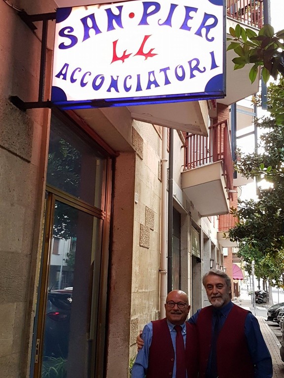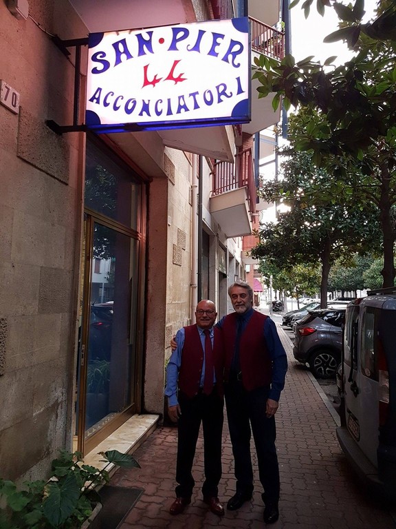 Una storia più lunga di un matrimonio quella di San Pier 44 dove Santo e Piero fanno i barbieri ad Albenga da 44 anni.
