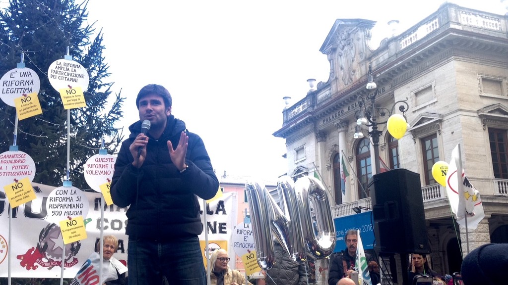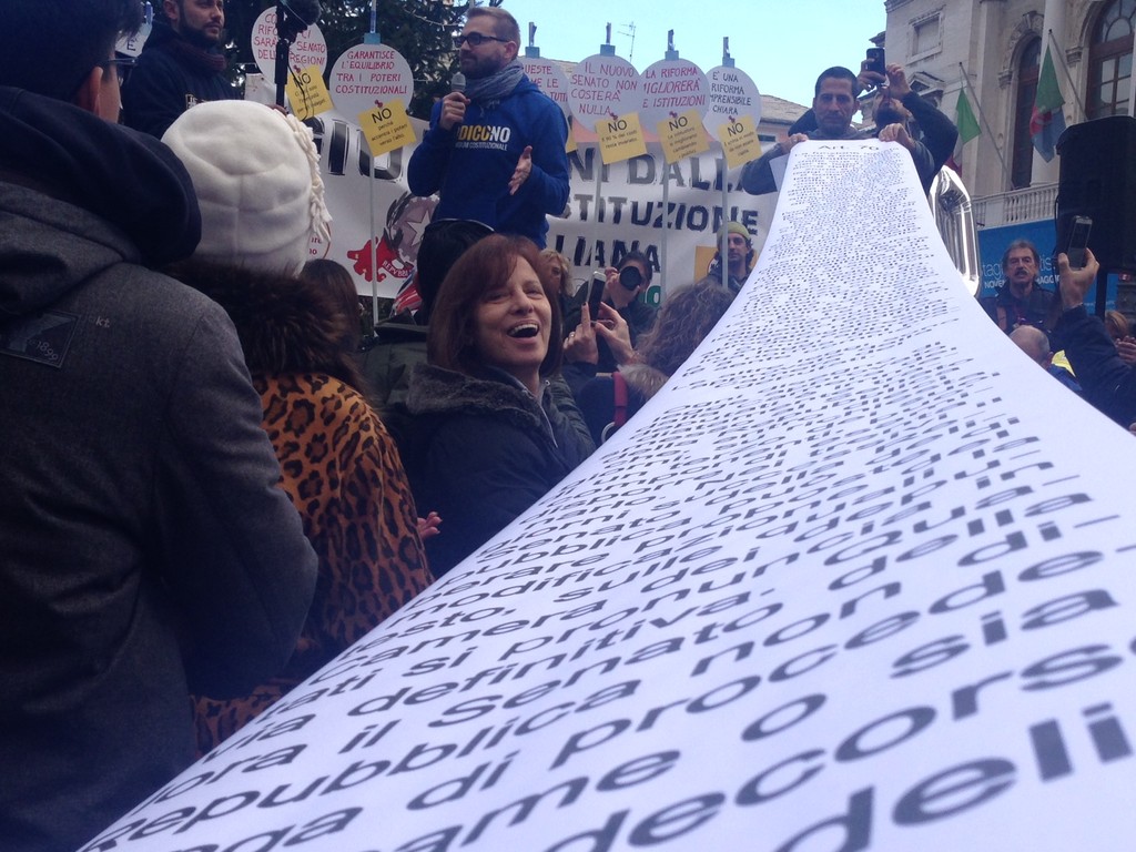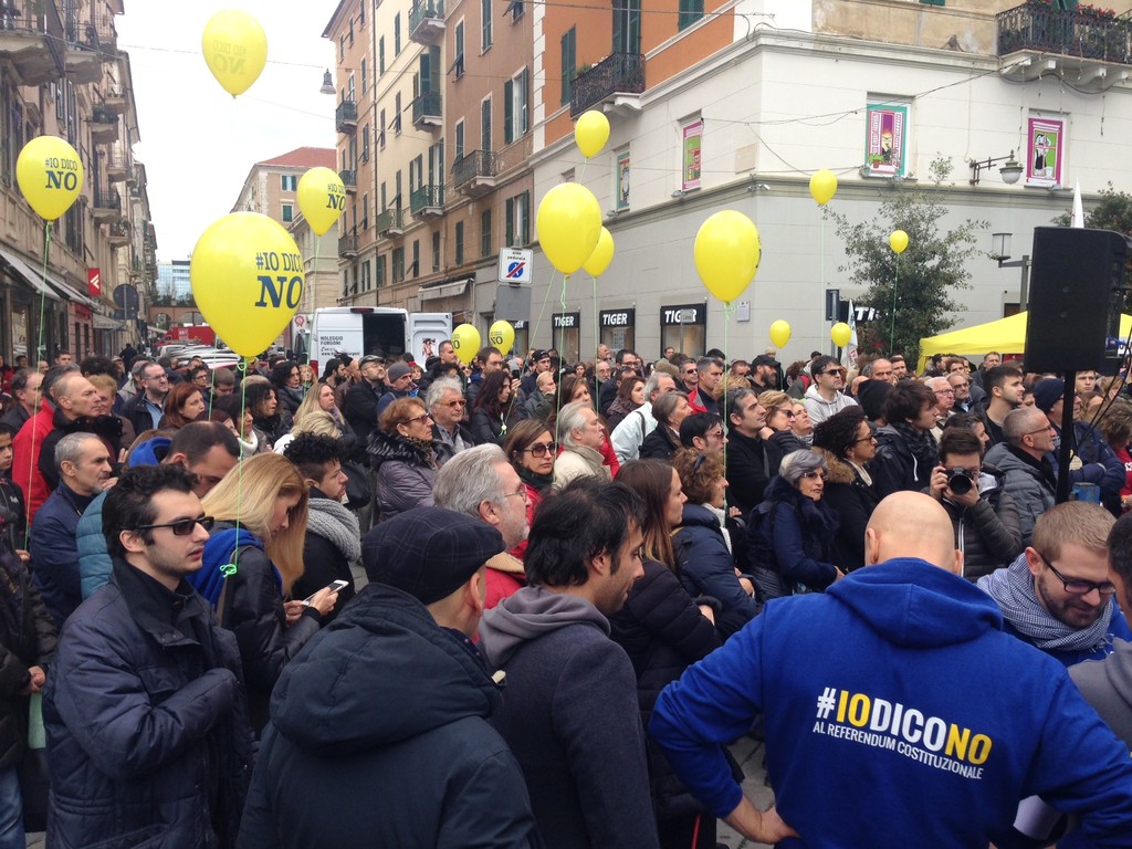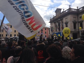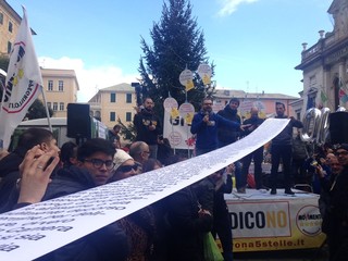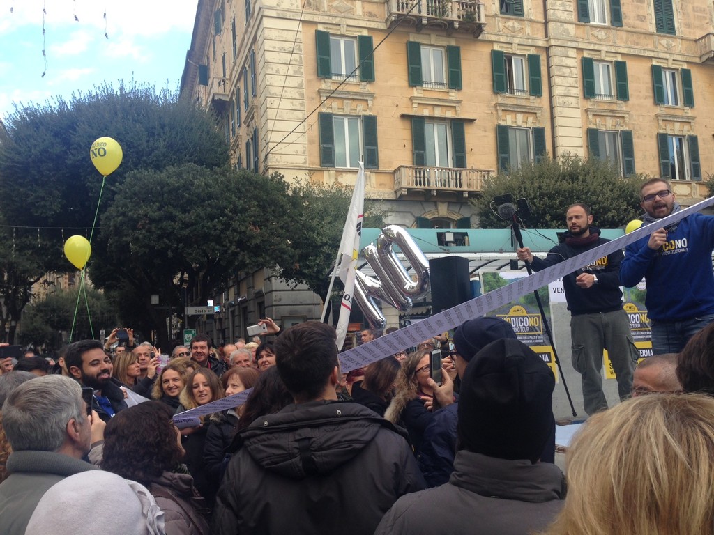 Le ragioni del NO: "Un disastro annunciato che non renderà le nostre istituzioni più efficienti e più economiche. Se si fosse approvata la legge taglia-stipendi presentata dal MoVimento 5 Stelle si sarebbero risparmiati oltre 87 milioni di euro all’anno senza distruggere la Costituzione. Regioni e Comuni verranno privati dei loro già deboli poteri a tutela degli interessi dei cittadini". Questa la posizione dei 5 Stelle, che in piazza Sisto hanno radunato numerose persone.