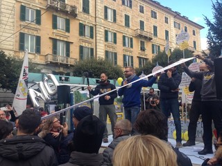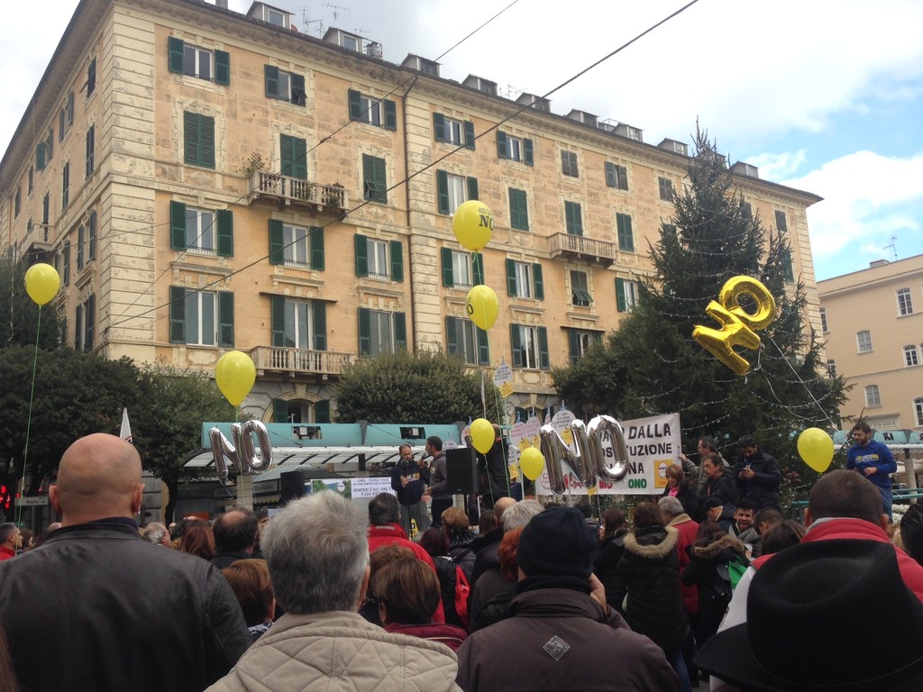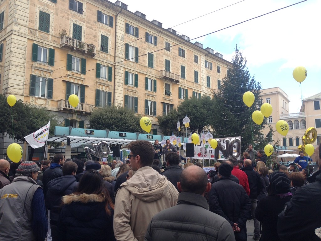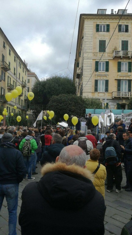Il TreNO Tour del Movimento 5 Stelle ha fatto tappa a Savona, in piazza Sisto IV, dove Di Battista - giunto con un po' di ritardo - ha illustrato le ragioni del no al referendum costituzionale.