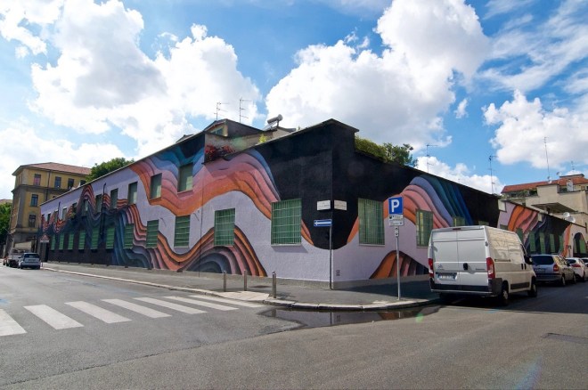 “Il Condominio di via Barrili è un progetto di riqualificazione urbana che abbiamo realizzato a Milano. Siamo stati contattati dagli inquilini dello stabile, che sono i veri vincitori del premio, per realizzare un’opera d’arte sulla facciata esterna dello stabile. L’intervento non era semplice, il palazzo ha molte finestre, per cui la ricerca dell’artista che avrebbe potuto “inglobare” completamente la superficie è stata piuttosto travagliata. Alla fine abbiamo preso un aereo e siamo andati ad Amburgo a proporre il progetto a 1010, uno tra i più importanti urban artists del momento. 1010 ha accettato e a maggio sono partiti i lavori che si sono protratti per una decina di giorni. Quegli ottocento metri quadrati hanno radicalmente cambiato l’aspetto estetico del palazzo e devo ammettere che le reazioni da parte degli abitanti di tutto il quartiere sono state positive. Inoltre all’interno dello stabile esiste una galleria d’arte molto importante, la 10 A.M., che è specializzata in arte cinetica e che ha proposto un’esposizione personale dell’artista in concomitanza con la presentazione dell’intervento murale”.