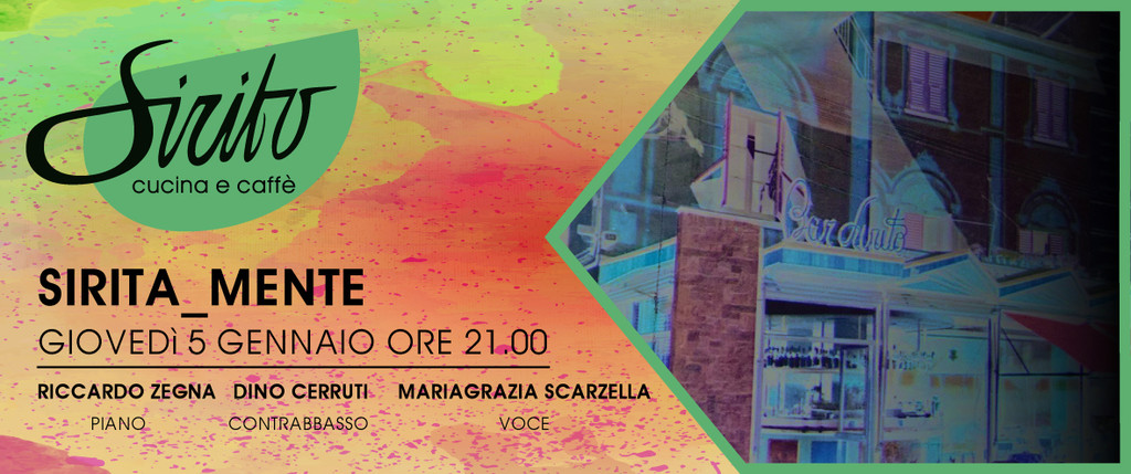 Giovedì 5 gennaio alle 21:00 il Sirito ospiterà la musica Jazz di Riccardo Zegna, Dino Cerruti e la voce suadente di Maria Grazie Scarzella.