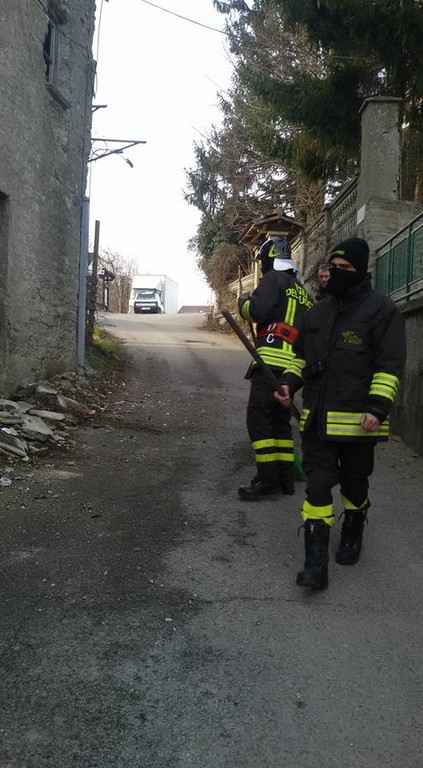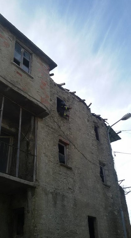 Vigili del fuoco in azione questa mattina a Dego. L'intervento si è reso necessario per rimuovere alcune tegole pericolanti da un edificio abbandonato in via Trento.