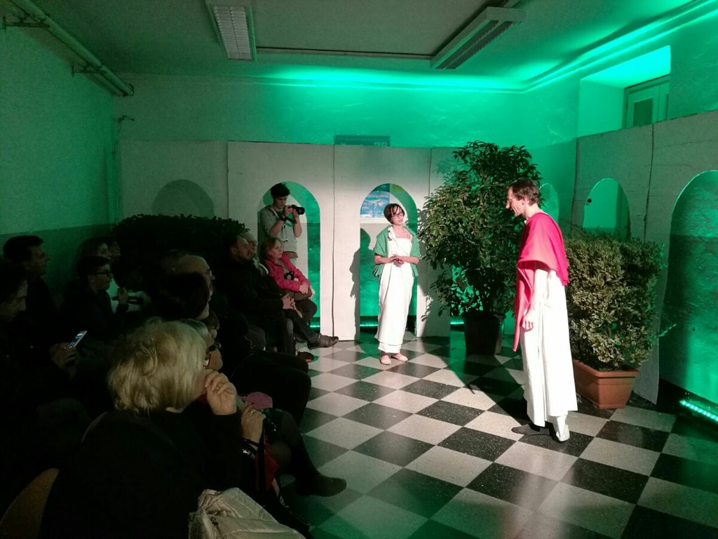 Numerosi i personaggi incontrati durante il cammino: dalla poetessa greca Saffo, ad Alessandro Magno, allo statista Pericle, al filosofo greco Epicuro per proseguire con lo stratega Temistocle, colpito da ostracismo, e il condottiero spartano Leonida e il suo celebre discorso presso il passo delle Termopili. Al termine del percorso la sacerdotessa Pizia ha pronunciato il discorso finale, cioè il brano scelto per la conclusione unica su tutto il territorio nazionale, e i viaggiatori saranno accompagnati in nave verso l’uscita.
