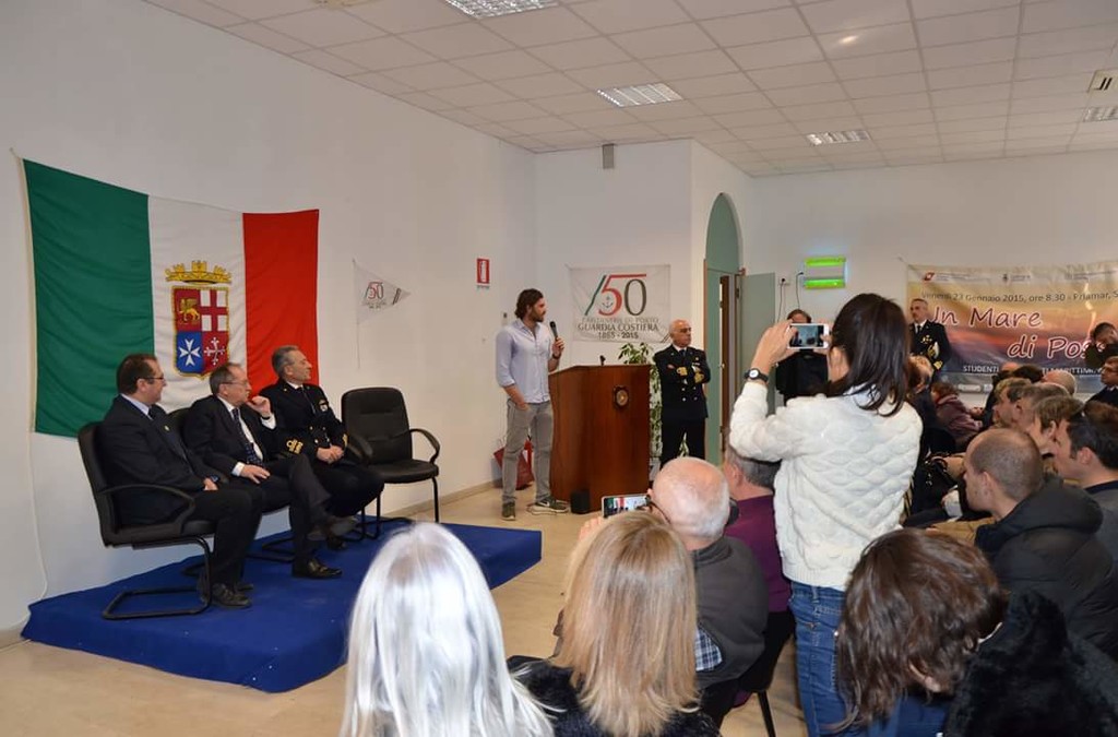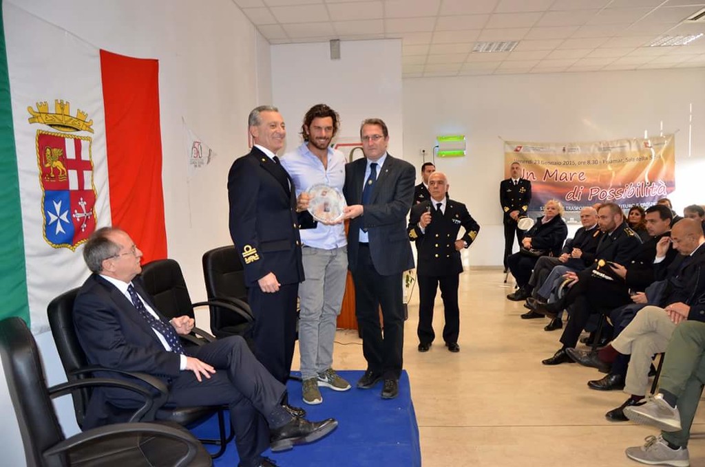 Poi l’Ammiraglio ha premiato, nella sede della Capitaneria di porto di Savona, il giovane albisolese Matteo Iachino, neo campione del mondo di windsurf slalom. Si tratta di un segno di compiacimento della Guardia Costiera Ligure (una realizzazione colorata in vetro di Costantino Bormioli da Altare), che intende esaltare l’importanza degli sport acquatici e - attraverso la forte testimonianza di successo di Matteo Iachino - promuovere il mare quale elemento centrale su cui impiantare quella maggiore consapevolezza dei giovanissimi, potenziale volano per un percorso virtuoso di crescita della cultura marittima. L’obiettivo è stato colto appieno, poiché i 20 studenti della Sezione Blu delle medie di Albisola hanno poi monopolizzato Iachino, curiosi ed entusiasti dei suoi straordinari successi.