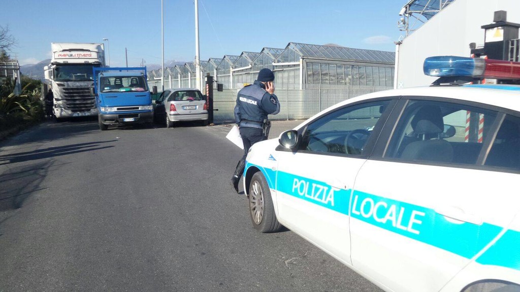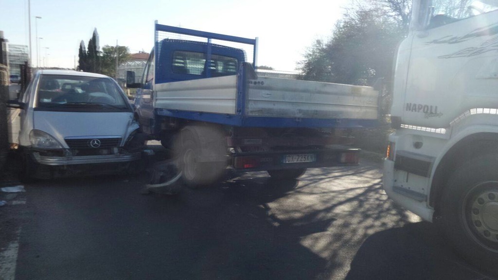 Incidente in via del Cristo ad Albenga, Mercedes si incastra tra un camion e un muretto
