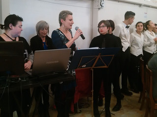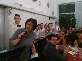 Il menù era composto da un aperitivo di benvenuto con fritti e stuzzichini, un antipasto “ceppo” (cioè tiepido, detto alla ligure) e un tris di polenta al ragù di salsiccia, al sugo di funghi e alla fonduta di gorgonzola. Gran finale veramente spettacolare con la cosiddetta “meringata antigelo”, un dolce di squisita e vaporosa leggerezza. I vini sono stati offerti dall’azienda agricola “Punta Crena” di Varigotti. L’intrattenimento musicale è stato affidato alle quattro voci femminili di The Soul of Gospel (Anna Marino, Elisabetta Viara, Nicoletta Senatore, Giulia Senatore).