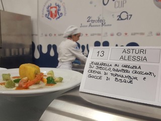 L’Alberghiero di Finale conquista così la medaglia d’argento con Alessia Asturi (classe IV B), che ha presentato la mozzarella in carrozza su stecco, con gamberi croccanti, crema di topinambur e gocce di bisque (già portato ad un concorso presso l’Alberghiero di Alassio), mentre Alessandro Spirito (classe V B) conquista la medaglia di bronzo, con la sua tartare di polenta al pesto con crumble di focaccia; Marco Quercini (classe V C) si aggiudica il concorso “Foto sul web” con il semifreddo alle mandorle adagiato su frolla al cacao.