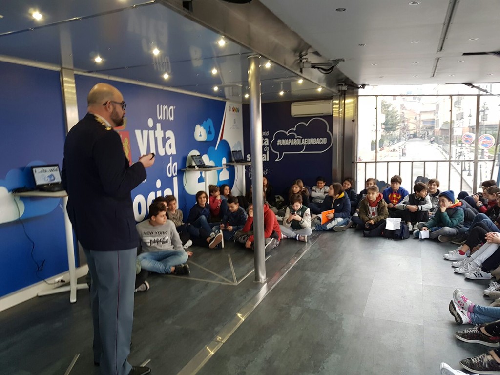 Sono saliti a bordo del tir - allestito come aula multimediale - gli studenti delle scuole elementari, medie e superiori del comprensorio, che parteciperanno agli incontri con gli specialisti della Polizia Postale.