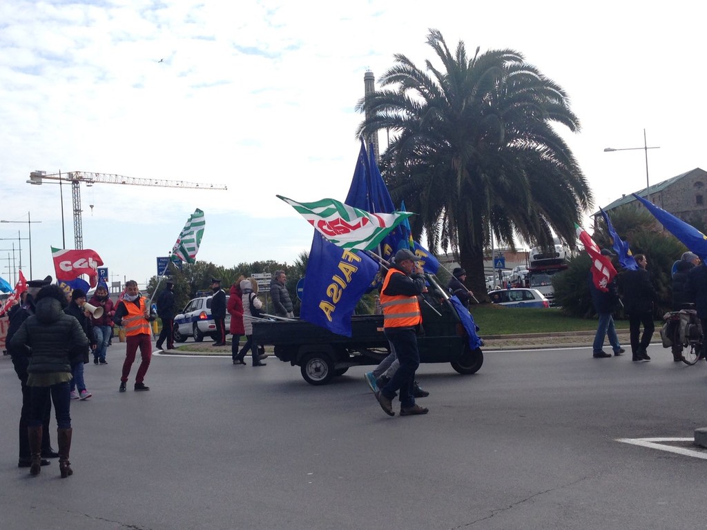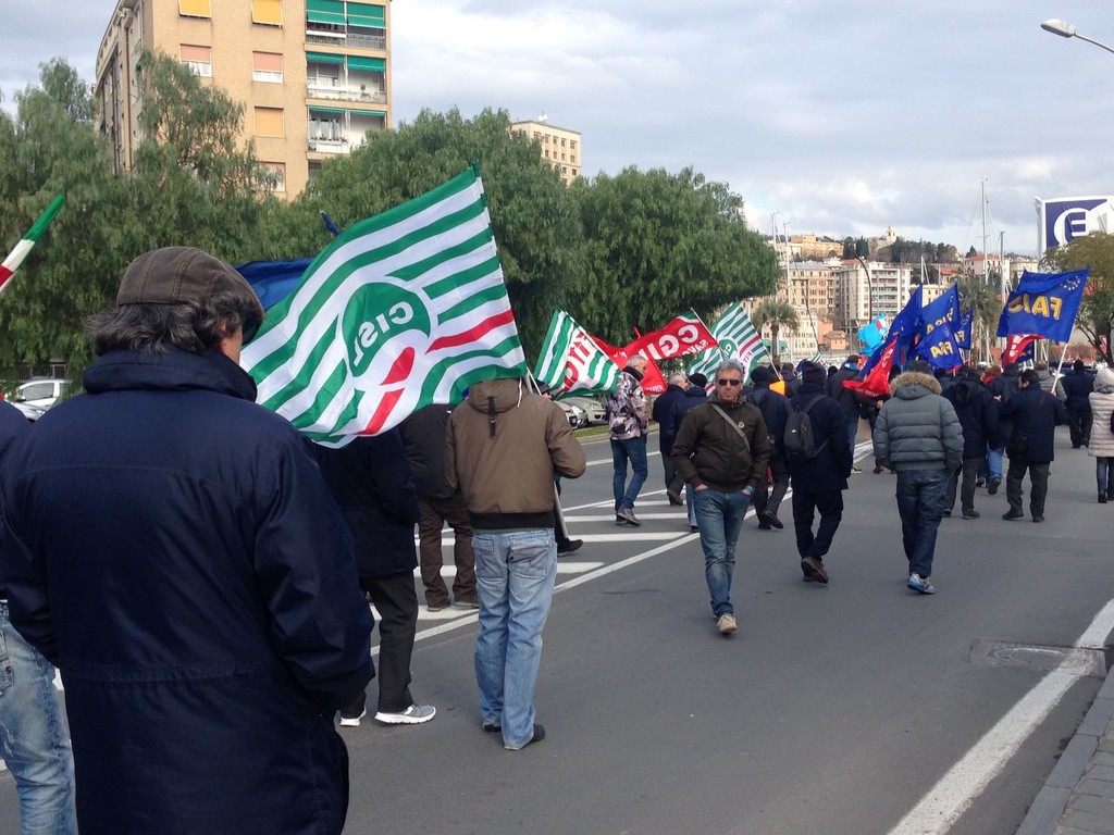 I lavoratori, partiti da piazza Rebagliati in darsena, hanno iniziato il corteo per le strade di Savona, bloccando il traffico in corso Mazzini. Il corteo di protesta continuerà in direzione palazzo Nervi.