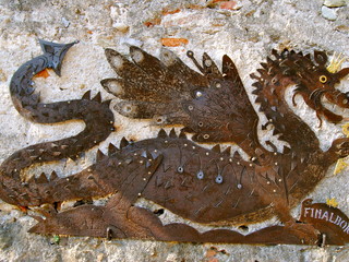 Sono animali magici, vere e proprie opere d'arte firmate GrAl, ossia Graziosa e Albano, due artisti (pittrice lei, scultore lui) che dal 2002 hanno trovato in Finalborgo una fonte continua di ispirazione. E da quest'estate, sempre più commercianti del Borgo hanno iniziato a chiedere a Graziosa e Albano una loro opera da esporre insieme all'insegna del negozio, riempiendo così il paese di animali forgiati in metallo, a volte parzialmente colorati, e con qualche piccola borchia per caratterizzare meglio la scultura.
