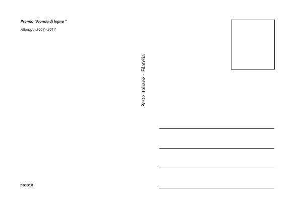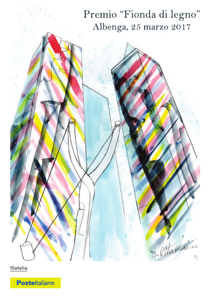 Il Premio Fionda di legno riceve nel frattempo un importante riconoscimento grazie a Poste Italiane e al dottor Pietro La Bruna, responsabile nazionale del settore filatelia. Infatti in occasione del decennale del Premio (2007 – 2017) Poste Italiane ha pubblicato una speciale cartolina dedicata ad Albenga città delle torri e della fionda. Il bozzetto originale, opera del Maestro Giuliano Ottaviani, vede in primo piano la fionda dei fieui di caruggi e sullo sfondo le inconfondibili torri ingaune. Poste Italiane ha inoltre concesso un particolare annullo filatelico celebrativo e sabato 25 marzo, in occasione della consegna del premio Fionda 2017 al teatro Ambra, sarà allestito in largo Doria un apposito stand per chi vorrà un ricordo particolare della giornata.