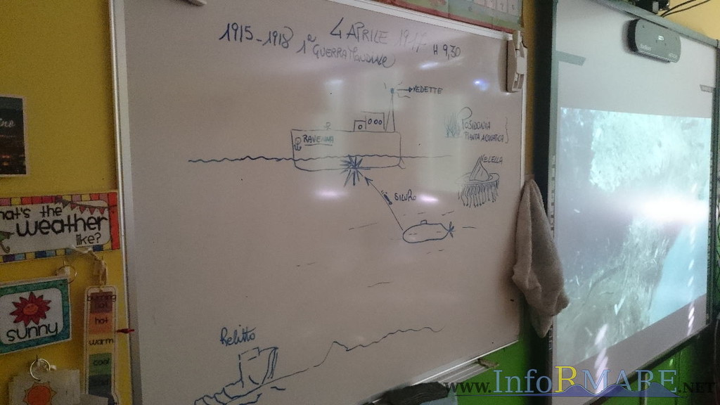 Ed è proprio di questa seconda parte della vita del Ravenna che ha parlato ieri l’ASD InfoRmare agli studenti della scuola primaria di Laigueglia. “Grazie alla volontà dell’amministrazione comunale di Laigueglia, del sindaco Franco Maglione e dell’assessore Fabio Macheda, abbiamo potuto portare i bambini a fare un viaggio virtuale,” prosegue Fabio Rossetto di InfoRmare, “partendo dalla riva fino ad arrivare al Ravenna, descrivendo i vari habitat che dalla spiaggia al posidonieto al coralligeno arrivano al relitto, utilizzando le nostre immagini e uno splendido video del Ravenna girato da Rino Sgorbani, che ringraziamo per averci dato la possibilità di proiettarlo.”