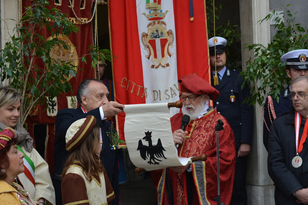 Lunedì prossimo è previsto alle 16 il raduno in piazza del Brandale dei partecipanti con partenza del corteo e sfilata lungo le vie del centro storico al suono dei rintocchi della Campanassa alle 16.30. alle ore 17 invece in piazza del Brandale avrà luogo la lettura dell’Editto con il quale il Marchese Ottone del Carretto vendette le terre savonesi al Podestà rendendo “Savona Libero Comune”. A seguire intervento dei Musici di Pro Musica Antiqua.
