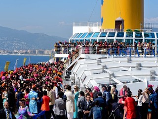Per celebrare il matrimonio sono state seguite le antiche tradizioni indiane, riadattate in chiave moderna: venerdì sera si è svolto il Sangeet, una cerimonia che in origine veniva organizzata per preparare la sposa al grande evento, ma che col tempo si è trasformata in una festa in onore di entrambi gli sposi. In questa occasione Adel e Sana e i loro amici e parenti si sono cimentati in danze e balli indiani in segno di buon augurio. Sabato mattina invece, con la nave ferma in rada davanti alla suggestiva Promenade de la Croisette di Cannes, si è celebrato il Baraat: un corteo festante che ha attraversato i ponti esterni della nave in un tripudio di colori, musiche e danze indiane, per accompagnare lo sposo Adel di fronte alla sua promessa Sana, che lo ha atteso come una vera principessa sul ponte superiore in una spettacolare apparizione. Il white party a bordo piscina ha concluso l’evento, con il taglio della torta nuziale, preparata dal Corporate Chef di Costa Crociere, Fabio Cucchelli: un dolce spettacolare a 12 piani per un peso totale di ben 140 chili, alto quasi 3 metri e interamente ricoperto di cioccolato fondente, decorato con una cascata di petali di fiori bianchi.