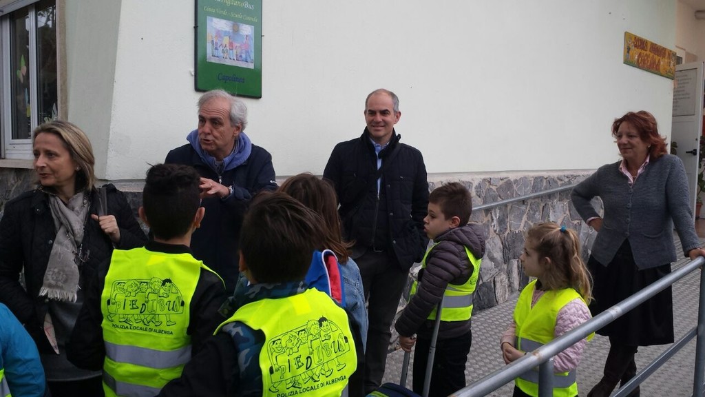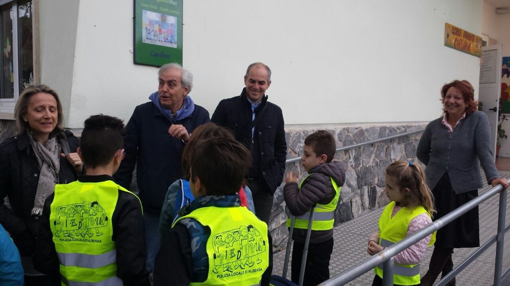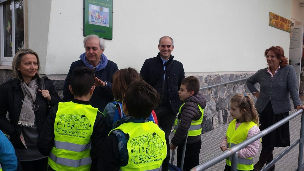 Con l'inaugurazione ufficiale della terza linea ha definitivamente preso il volo il PiedIngaunoBus. Questa mattina alla presenza del Sindaco Giorgio Cangiano, dell'assessore Simona Vespo, della Vice preside Mara Grossi e delle Autorità scolastiche è ufficialmente partita anche la linea Piedibus che dalla Via Aurelia (piazzale dell'Osteria del Tempo Stretto) raggiunge il Plesso Scolastico di Carenda.