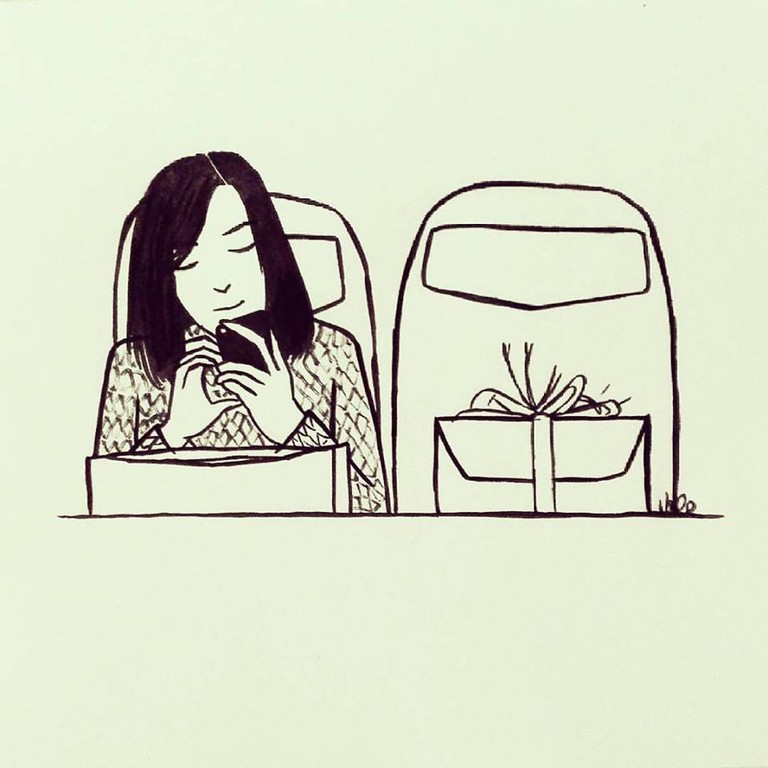 Valentina, 32 anni, architetto, per lavoro si occupa di realizzare user interface (interfacce utente). Un'attività con una buona dose creativa, anche se più prosaica di quel che può apparire ai profani. Vive a Torino e in alcuni giorni della settimana deve spostarsi in Lombardia. La monotonia delle rotaie, soprattutto al mattino presto, andava spezzata: così, la via ferrata per il capoluogo meneghino, si è tramutata in un'occasione di poesia. A partire dall'anno scorso, quando il signore accomodato sul sedile 8B si è rivelato lo spunto per una piccola illustrazione. Quell'8B ha battezzato la catena di quadretti che adesso compongono un mosaico di istanti, di momenti umani tradotti sulla carta con un tratto tanto pulito quanto efficace.