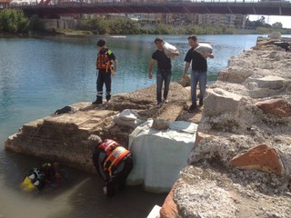 Si stanno svolgendo le operazione di messa in sicurezza ruderi nell' alveo del fiume Centa grazie all'intervento della Soprintendenza ai beni archeologici, la Regione Liguria e il gruppo comunale Protezione Civile Albenga.