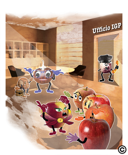 Il prestigioso Ufficio IGP, da anni si occupava di proteggere e promuovere i prodotti del territorio. A dirigerlo, la signora Nocciola Trilobata, nota a tutti per il suo viso tondo e gentile; all’Amministrazione c’erano le quattro sorelle Rosse Cuneo che, somigliandosi molto, amavano giocare con le sfumature: Mela Gala aveva un vestito giallo chiaro con striature rosse; Mela Red Delicious indossava solo abiti rosso vivo; Mela Braeburn adorava il rosso scarlatto e Mela Fuji preferiva il rosso chiaro, con sfumature gialle e verdi. Dell’Archivio si occupava la signora Castagna Cuneo, ligia alle regole, ma capace di parole di conforto al momento opportuno.