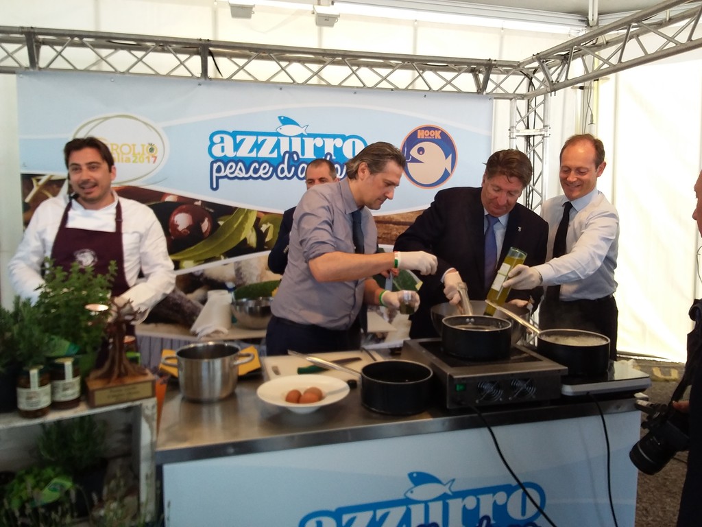 L'occasione è stata data dall'apertura di Girolio, prima tappa nazionale del tour promosso da "Città dell'olio" ospitato nel porto di Andora nell'ambito di "Azzurro, pesce d'autore", che ha visto dietro i fornelli anche il padrone di casa, il sindaco Mauro Demichelis ed Enrico Lupi presidente dell' Associazione Città dell'olio.