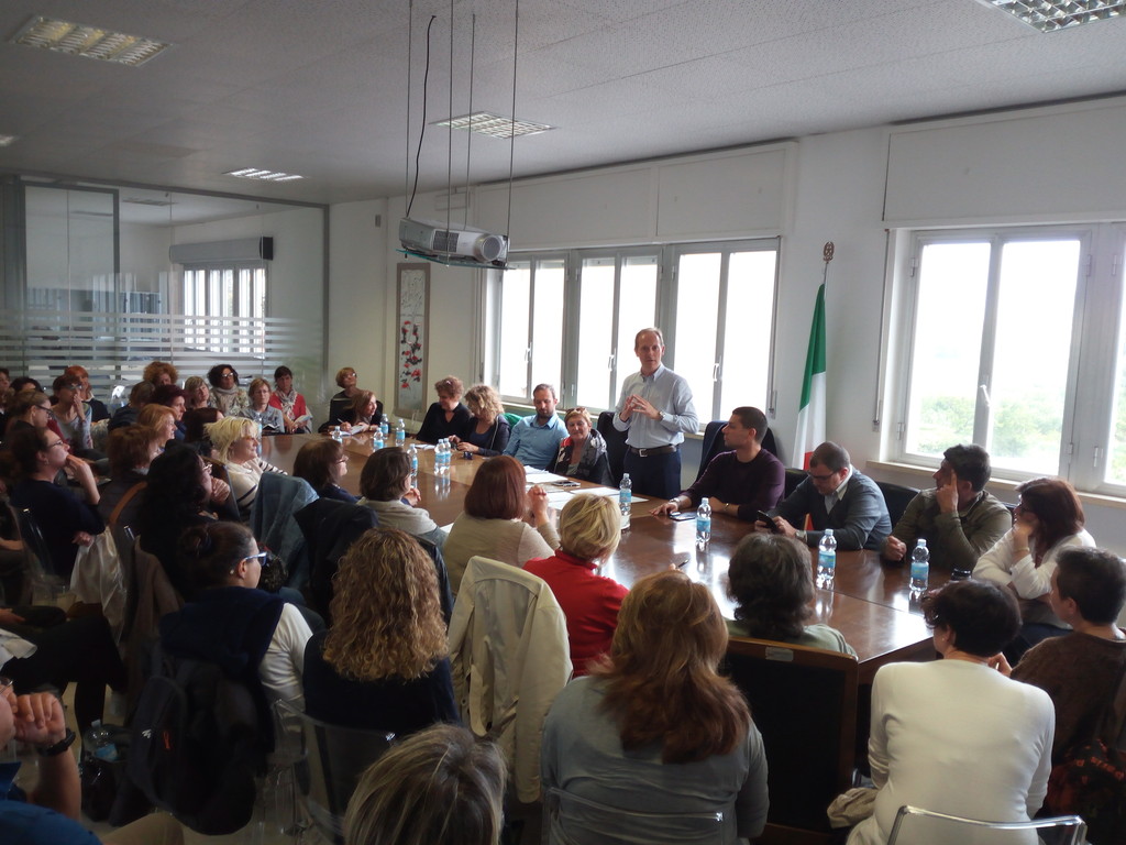 Clima disteso e collaborativo nell’incontro che si è svolto ieri pomeriggio nella sala riunioni del Palazzo Comunale fra il sindaco Mauro Demichelis e la sua maggioranza guidata dal delegato all’Istruzione Daniele Martino, la dirigente Maria Teresa Nasi e le insegnati dei plessi scolastici di Andora a cui il primo cittadino ha spiegato le motivazioni della chiusura per inagibilità della scuole Primaria e Secondaria di primo grado di via Cavour e i contenuti dell’ordinanza per il trasferimento degli studenti nelle nuove sedi.