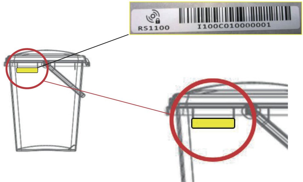 posizionare l’adesivo con codice a barre sul lato destro del contenitore, guardandolo frontalmente (avendo cura di farlo ben aderire alla superficie del contenitore), in posizione distante ca. 5/10 cm dal limite superiore e laterale.